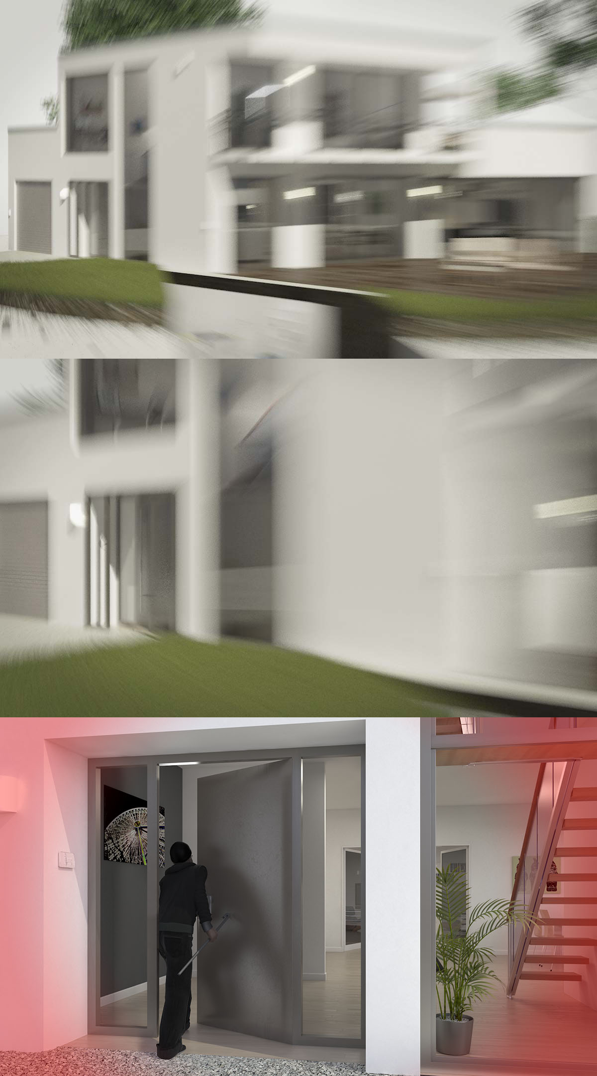 In Kombination mit der bellenden und sprechenden Funk-Außensirene werden potentielle Einbrecher schon im Garten vertrieben.
